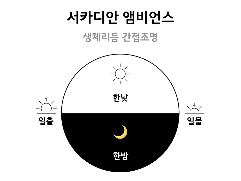 서카디안 앰비언스(Circadian Ambience)는 생체리듬(Circadian rhythm)과 간접조명(Ambient luminescence)의 합성어입니다.